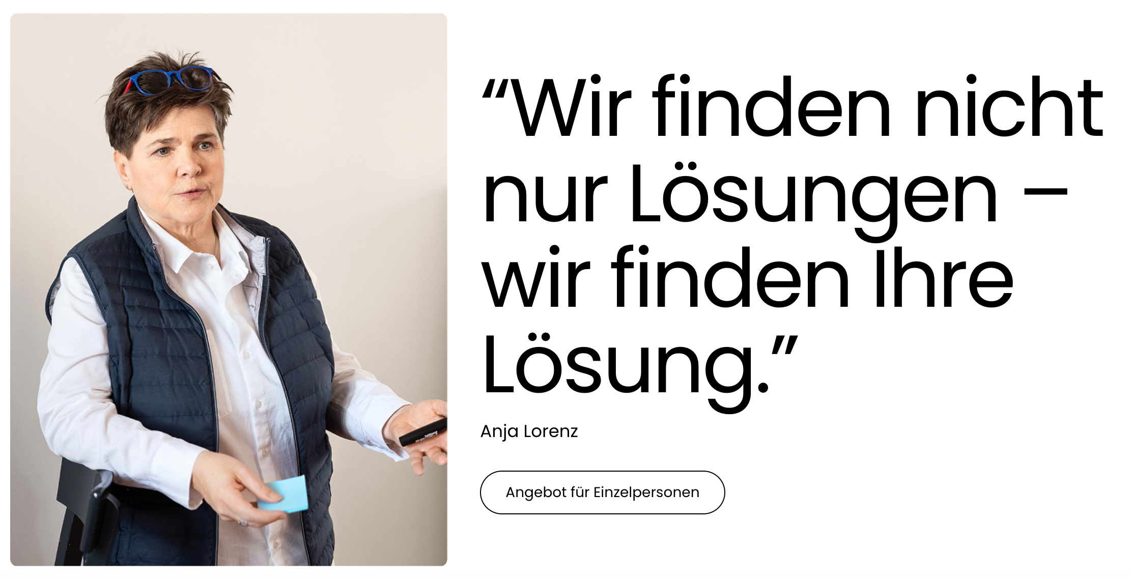 Aufgaben: Das Leistungsangebot für die neue Website schärfen und verständlich machen. Eine klare Navigation schaffen – für drei unterschiedliche Zielgruppen. Alle Texte schreiben. Tonalität: professionell und leicht verständlich.